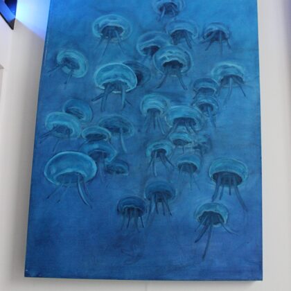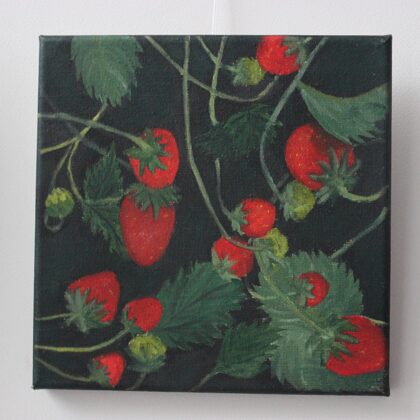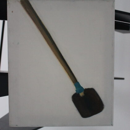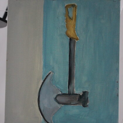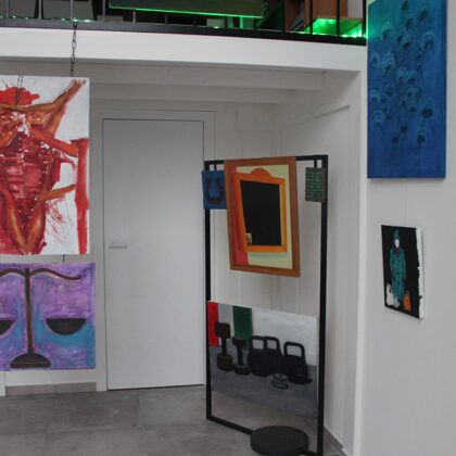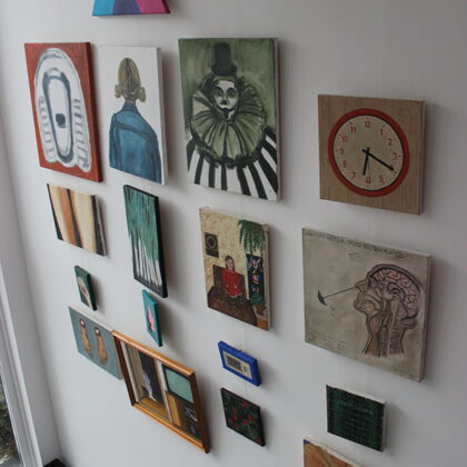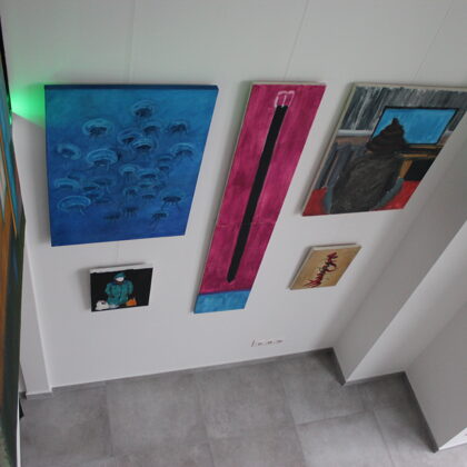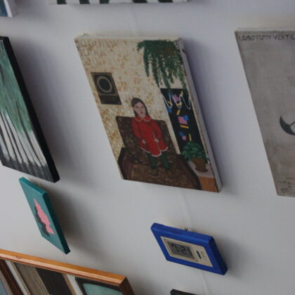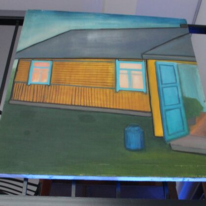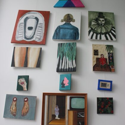 The artist's work reflects the constant flow of images that we encounter in virtual space, especially in social networks. The artist's work is inspired by the overload of images, information and misinformation. Aurelija Bernataitė's canvases are filled with subconsciously selected images from the close environment, virtual space, childhood photos, memories, popular culture and the world of art. Particularly striking are the works inspired by her grandmother's homestead in the Belarusian countryside, the blue colour of the buildings typical of those places. The artist's works are full of playfulness, irony, but also nostalgia, especially in the works that photographically record the motifs of her grandmother's homestead, which became particularly important after her death. The images in the paintings seem random on the one hand, but on the other hand, they are linked by a connection that is usually indescribable, an algorithm of the author's intuition. The painter's eye, like a spotlight, searches for objects to illuminate, to immortalise in painting. Both personal motifs and random images are given a special importance by painting, as if they are lifted above the everyday and raise questions about who is worthy of becoming the object of an artwork.