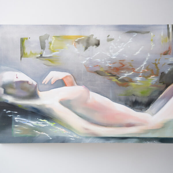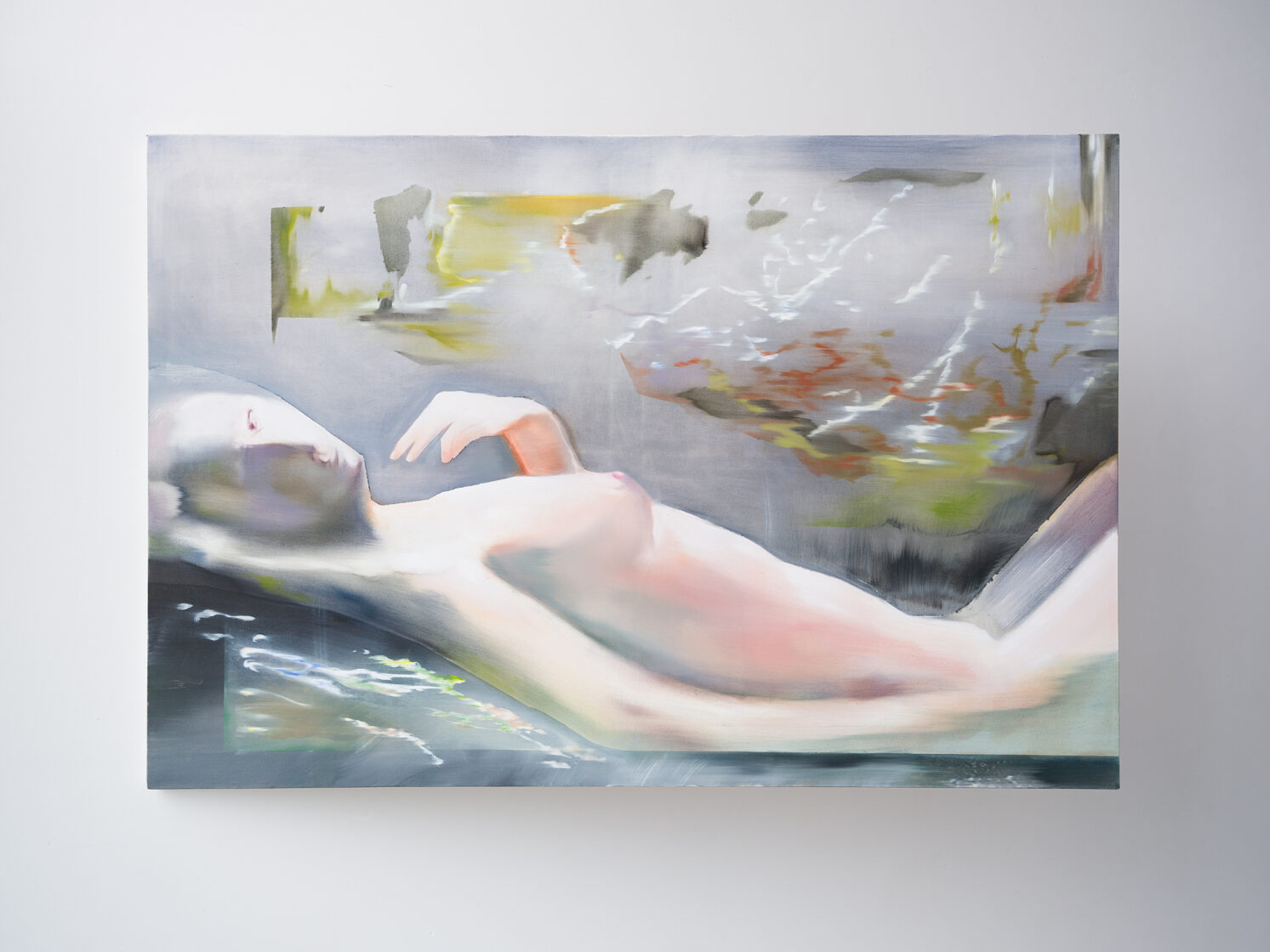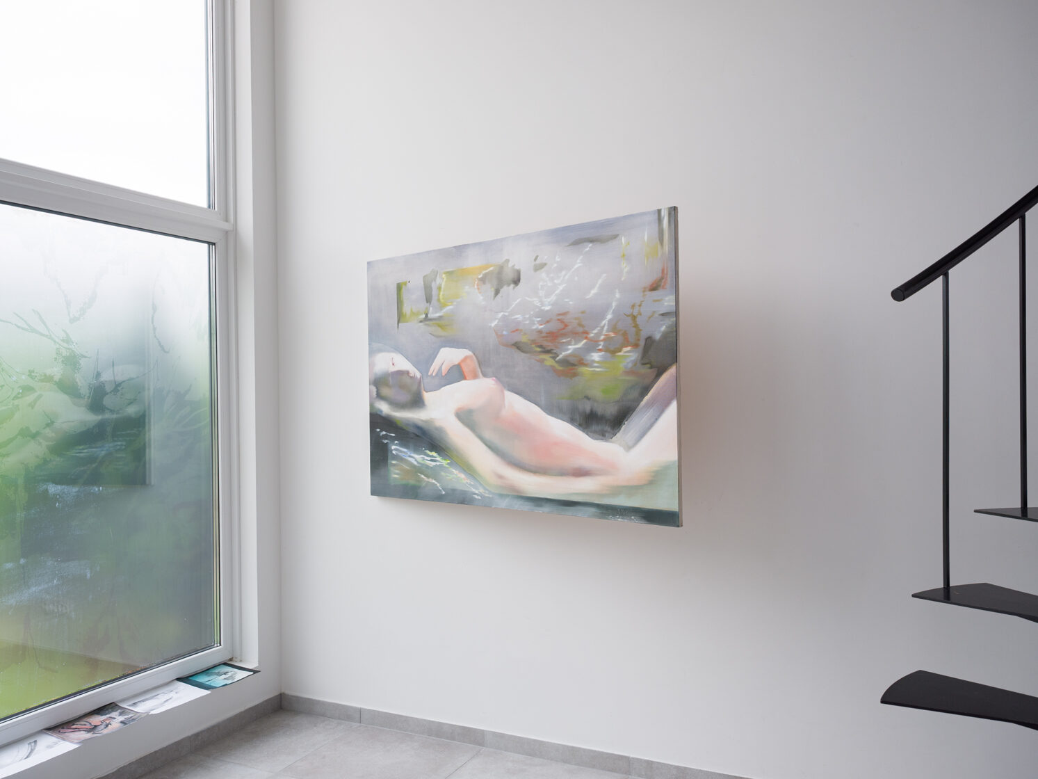 Dargývia is a made-up a term the artist created by combining two Lithuanian words, dar (still) and gýva (living). It embraces echoes of nature, mythology, and sensuality, which secretly still linger in painting, albeit gradually fading as relics of a different time. A certain duality emerges from the atmosphere of a remote industrial district and the gallery space. Skarolskytė’s works reinterpret matriarchal mythology, with a particular focus on the many goddesses of Lithuanian tradition. Knowledge about them is sparse and fragmented, and their names have become distorted. And yet, sometimes all you need is a stratum for weakness where the goddesses can enter.