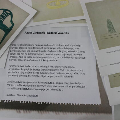 The drawings shown in the exhibition give an insight into the artist's creative process. The drawings created for the exhibition may later develop into other paintings, or they may remain as a captured moment of creative exploration. It could be said that it is not even the drawings that were created for the exhibition, but the exhibition that intervened in the creative process. The title of the exhibition speaks of this, as if inviting us to participate in the creative process, in the life of the artist herself.