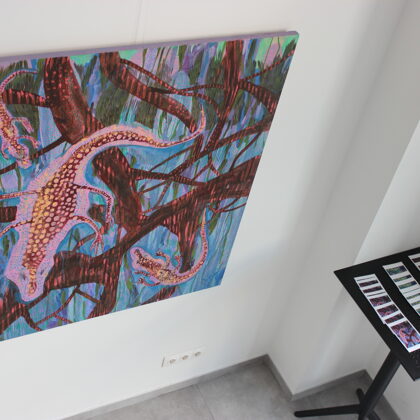 I am presenting a demo, the first paintings of the series, which allowed me to discover the style and to start telling my own story of the savannah.