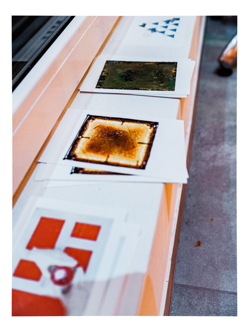 Each artist worked in monochrome, listening to their fragment of the music as a