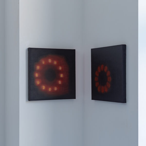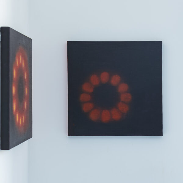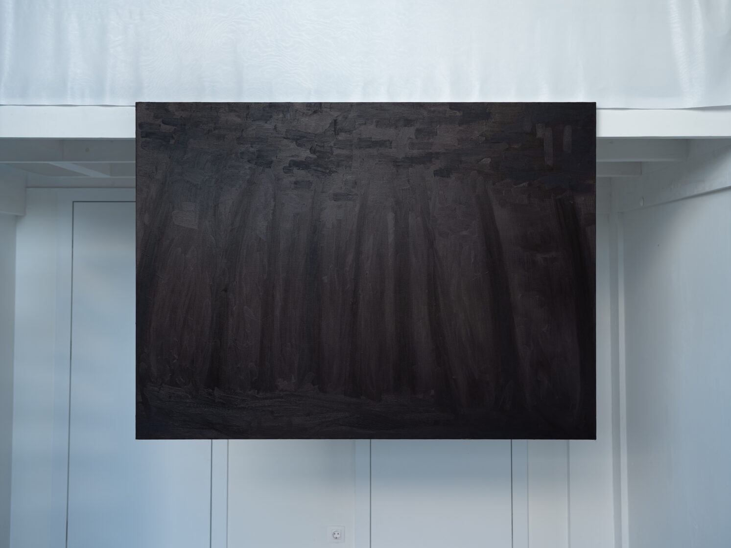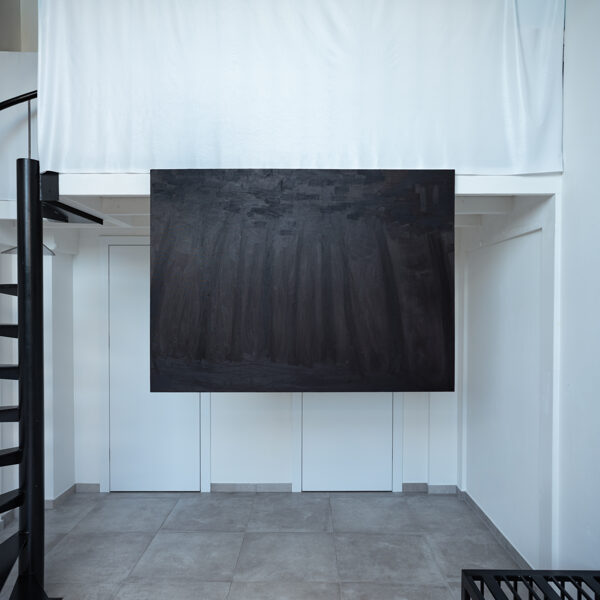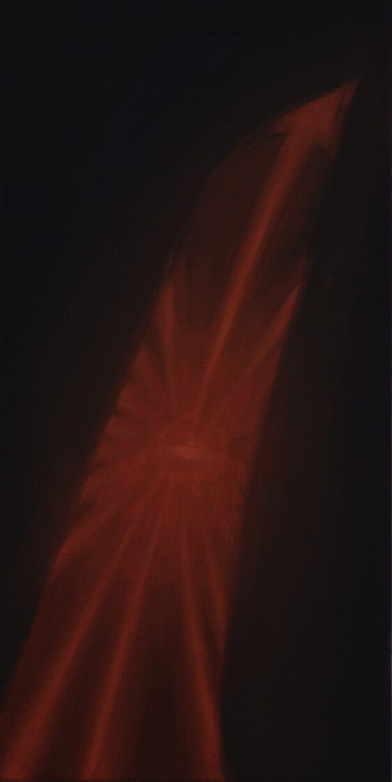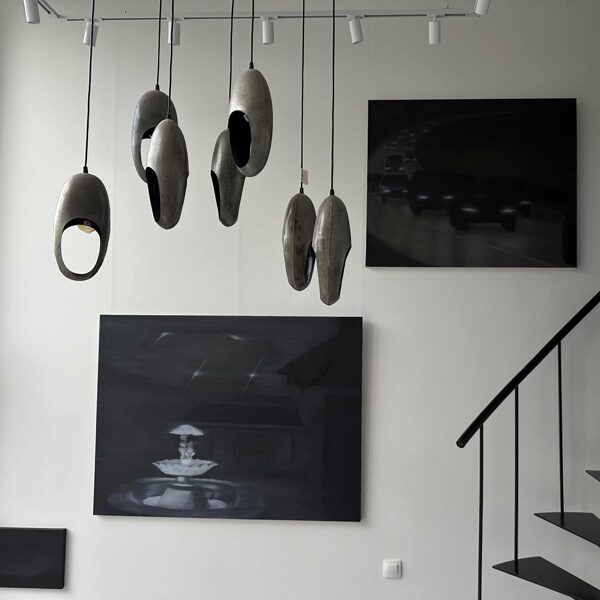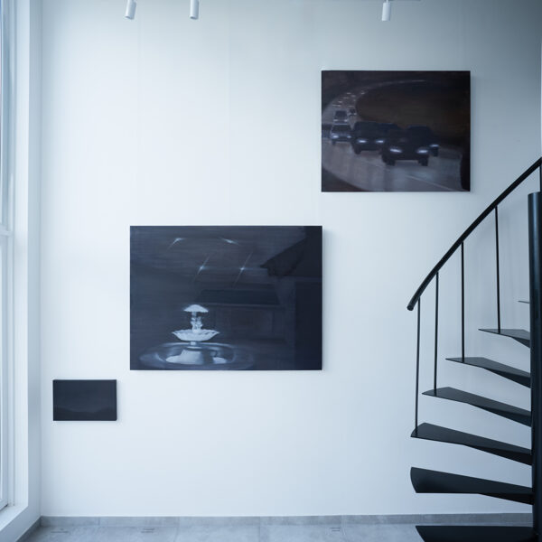 Viktorija Kemeklė evokes a certain state of unease by anthropomorphising means of mobility, giving them an intangible or, on the contrary, primitively recognisable objectness, all enveloped in expressive black. Forming in the artist’s paintings are transit routes between worlds: the networked, viscous reality opens channels, possibilities for the appearance, materialisation, or imagining, of the other, (un)seen, captured in a dream, emerging from the unconscious, a sign, or object, of destiny.