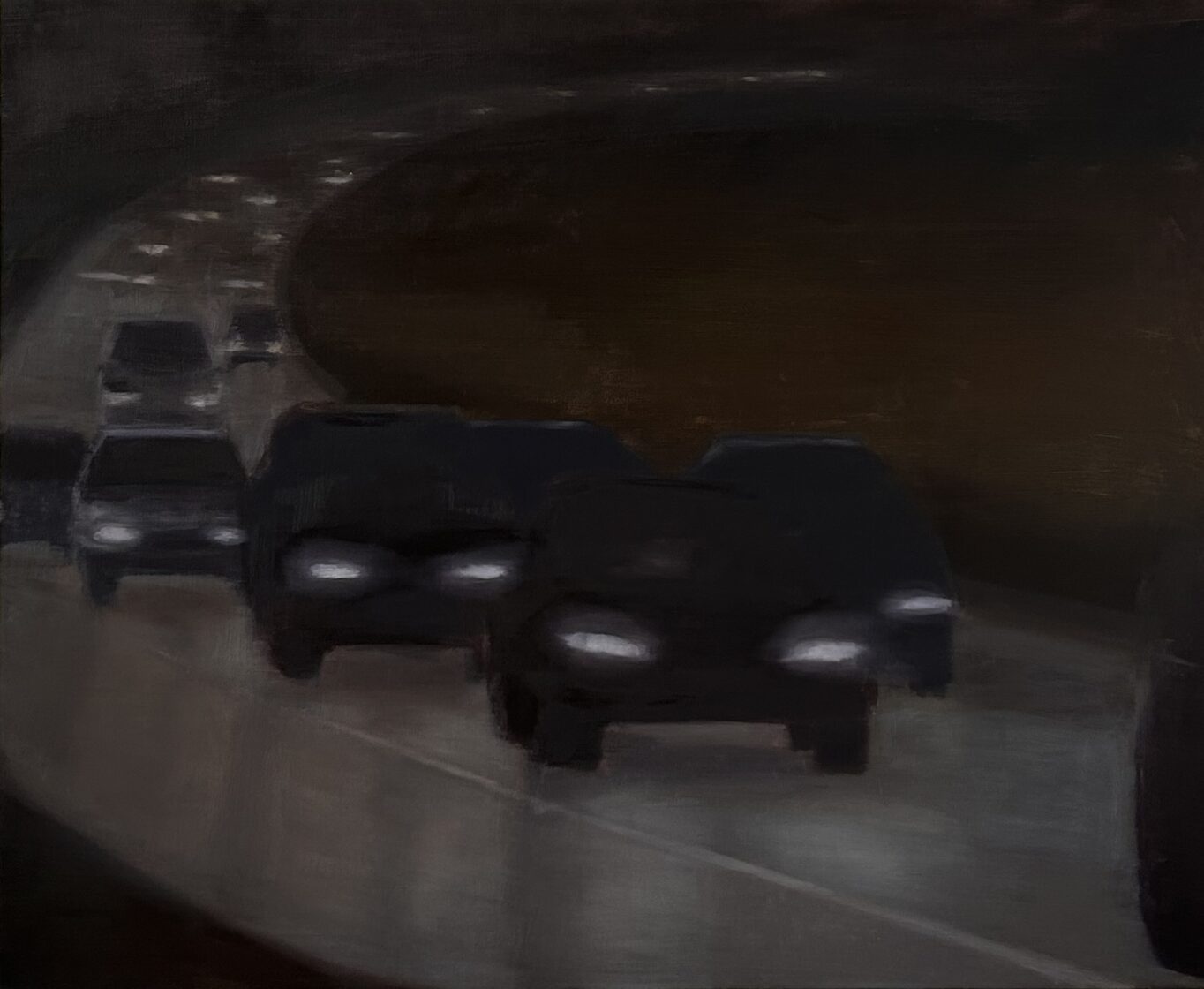 We are not the only ones moving – something is also moving towards us. Preying, defensive, or perhaps frigthening, the eyes (headlights) of some cars illuminate the darknes of other objects.