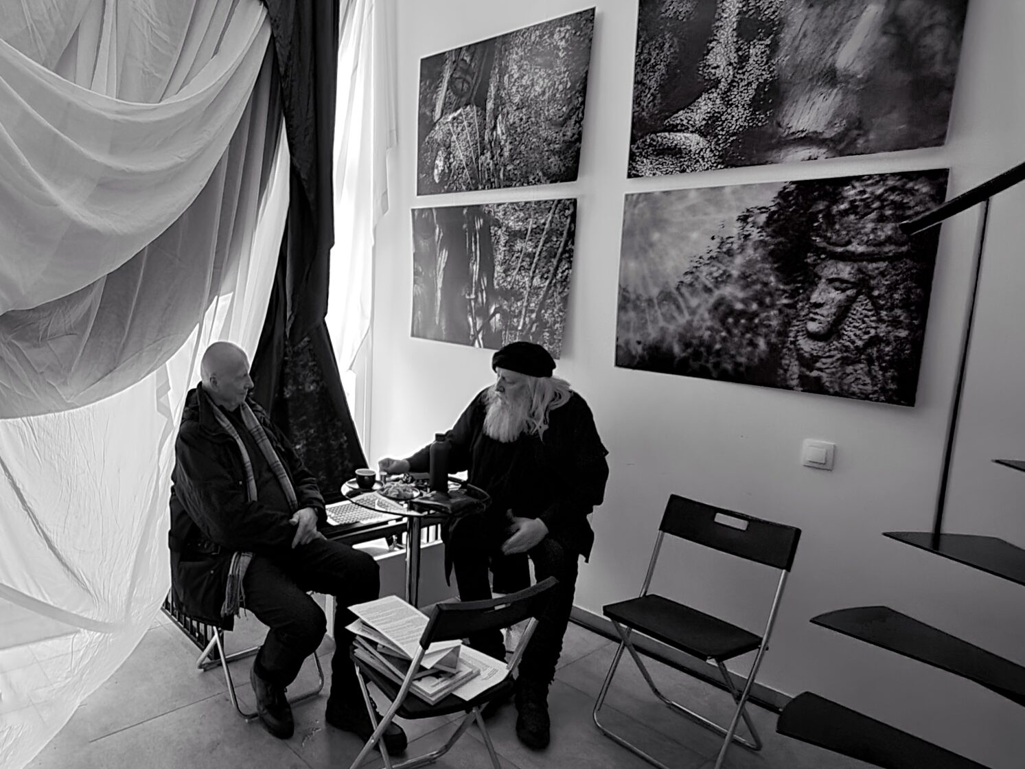 The project has grown out of many years of the Dirdovskyi’s work — from their first recordings in 1992, through films dedicated to the memory of Vilius Orvidas, to the film "Orvidų sodybos medinės skulptūros. Aware", which reveals the lines of fate and sculptural contours of Vilius and his friends. During the filming process, the artists met Modestas Grigaliūnas and his family, and it was then that a shared spiritual line connecting their artistic practices became apparent.