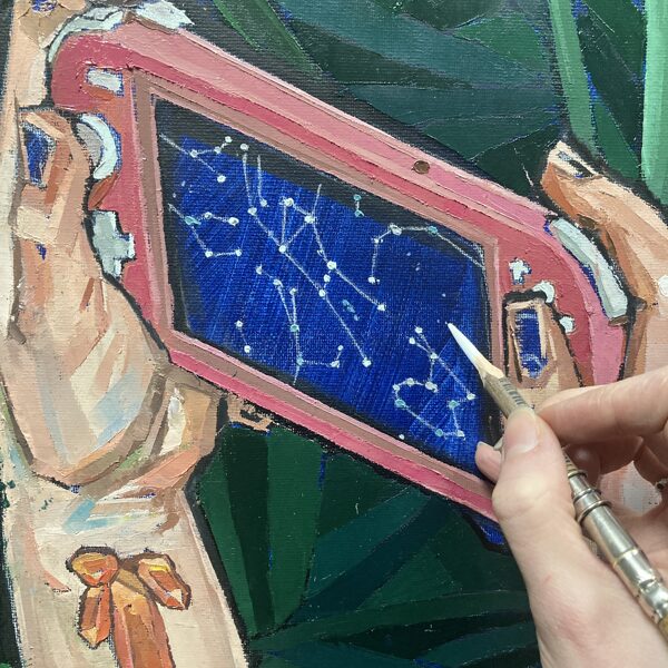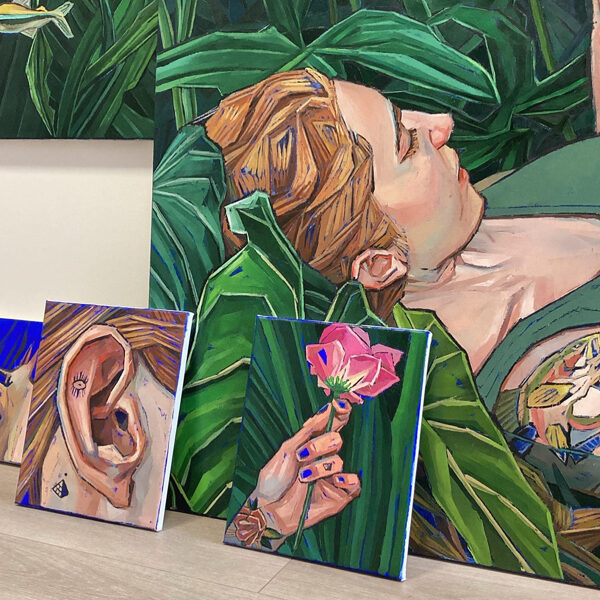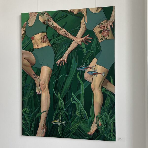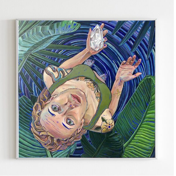 Kristina Asinus išskirtine tapybos technika vaizduoja žalią tikrovės vešlumą, išnyrančią iš amžinojo sąmonės vandenyno, visa ko šaltinio, žymimo mėlynos spalvos pirmojo sluoksnio. Bene reljefinė tapyba saugo informaciją ir pasakojimus lyg senovės civilizacijų raižiniai. Vaizduodama Amazonės džiunglių žalumą ir jos supamas tatuiruotas figūras, autorė sukuria nuorodą į 9 milijardų planetos gyventojų kolektyvinės sąmonės išraiškas. Blizgantys raudoni kristalai ir baltas Lemūrijos kvarcas byloja apie planetos turtingumą ne tik geologinėmis medžiagomis, bet ir begalinę išmintį, užmirštą ir paslėptą po kasdienybės sluoksniais bei sociokultūriniais konstruktais.