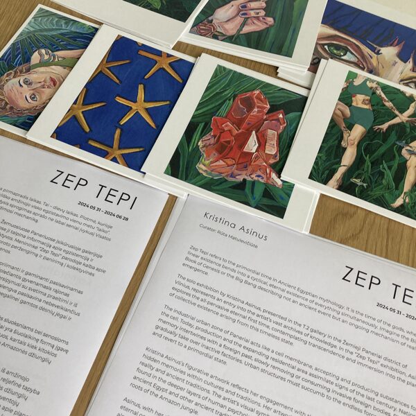 Kristina Asinus pristatoma personalinė paroda Vilniuje, Žemuosiuose Paneriuose įsikūrusioje galerijoje T.2 – tai įžengimas į autorės plačius žinių archyvus, kuriuose ji talpina begalinę informaciją apie egzistenciją ir pasakoja apie ją iš kitokios nei įprasta paradigmos perspektyvos. Menininkė Zep Tepi parodoje kalba apie visa persmelkiantį amžiną pirmąjį laiką. Menininkė mąsto apie proto peržengimą ir panirimą į kolektyvinės egzistencijos plotmę, kylančią iš to amžinosios belaikės būsenos.